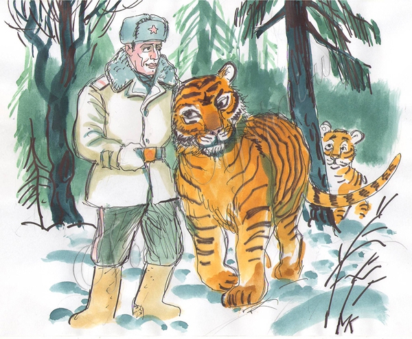 Пригадую, як батько в колі друзів (і своїх, а потім уже і моїх) часто розповідав одну історії. Тоді він служив на невеликому острові на річці Амур на прикордонній заставі. Морози були люті, і траплялося, що по льоду через річку до них приходили уссурійські тигри...