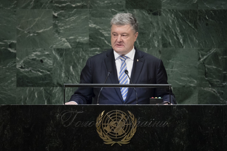 «Ми захищаємо українську землю та наш вільний вибір, ми протистоїмо відроджуваній неоімперіалістичній державі, яка хоче поділити світ наново, і таким чином ми захищаємо вільний світ», — сказав Президент Петро Порошенко, виступаючи 26 вересня на загальних дебатах 73-ї Генеральної Асамблеї ООН. «Москва робить українських дітей сиротами. Катує наших патріотів у своїх в’язницях. Понад 1,5 мільйона людей стали внутрішньо переміщеними особами. Вони все ще не можуть повернутися до своїх домівок. Росія постійно примножує людську трагедію», — наголосив Президент і закликав світову спільноту пам’ятати про причини війни в Україні. «Не забуваймо що це за війна. Україна ухвалила суверенне рішення про власний шлях до вільного світу, заснованого на демократичних цінностях та правилах. Росія карає Україну за це. Вбиває. Руйнує будинки. Вона бреше у промисловому масштабі. Вона робить вигляд, що Україна, як і Грузія, «самі напали на себе», — сказав Петро Порошенко і запитав присутніх: «Чи знаємо ми, який наступний сусід Росії «нападе на себе»? Чи буде світ й далі перебувати в стані «зручного заціпеніння», сподіваючись, що «наступним буду не я»?»