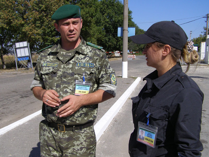 Начальник відділу пункту пропуску «Богдан» Могилів-Подільського прикордонного загону Юрій Данько та інспектор-кінолог Лариса Кацамат.