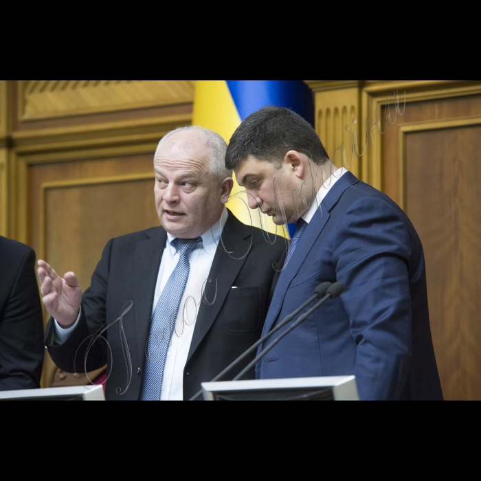 Пленарне засідання Верховної Ради України. На початку засідання народні депутати вшанували хвилиною мовчання героїв Небесної сотні. Голова Верховної Ради України Володимир Гройсман, Кубів