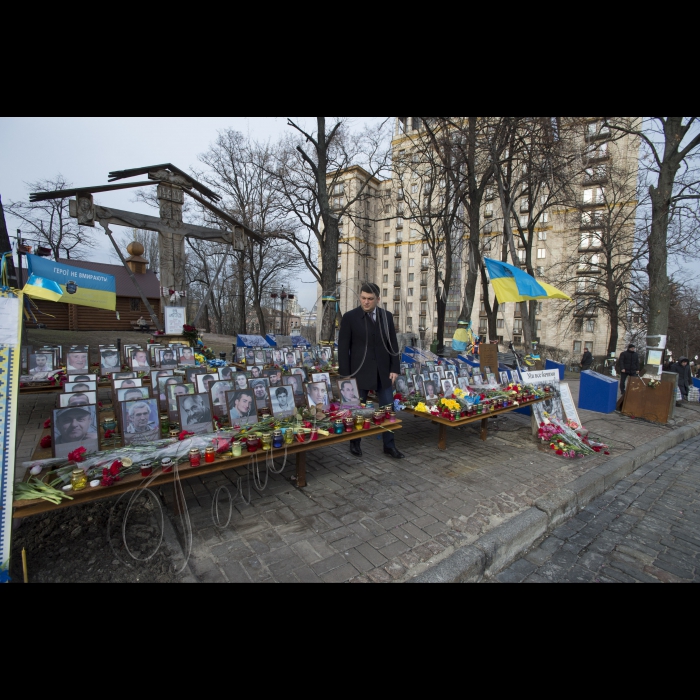 Голова ВР України Володимир Гройсман прініс квіти и лампадку на вул. Інститутська в пам'ять про Героїв Небесної сотні.