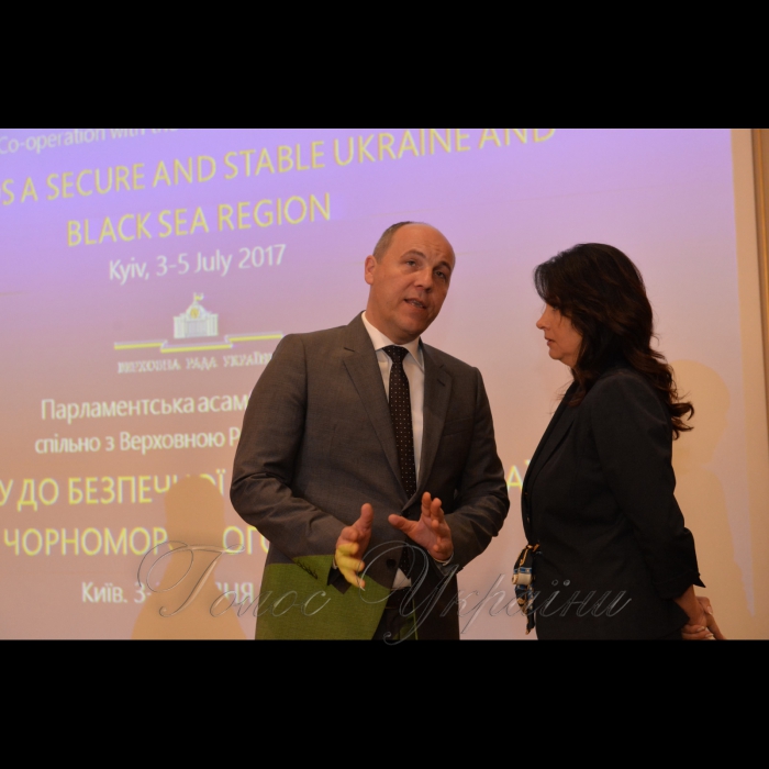 Президент Парламентської асамблеї НАТО Паоло Аллі, Голова Верховної Ради України Андрій Парубій, народний депутат України Ірина Фріз.