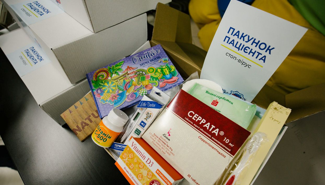 Спеціальний фонд «СтопВірус» розпочав нову акцію: для хворих на коронавірус готують «Пакунки пацієнта» — набір необхідних індивідуальних засобів і вітамінів, що їх не покриває Національна служба здоров’я.