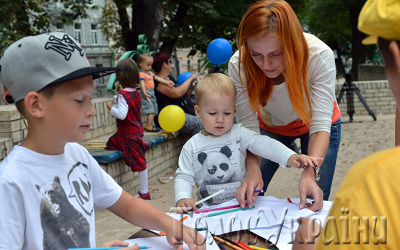 Тим часом організатори акції вручили діткам синьо-жовті повітряні кульки, що неабияк порадувало маленьких патріотів.