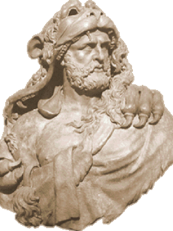 Мал. 1. Геракл — архаїчний прабатько скіфів/аріїв і спартанців/дорійців (у лев’ячій шкурі та шоломі з черепа царя звірів), який згідно з міфологією цих народів народився в Україні (м. Мирмікій — район Пантікапея/Керчі).