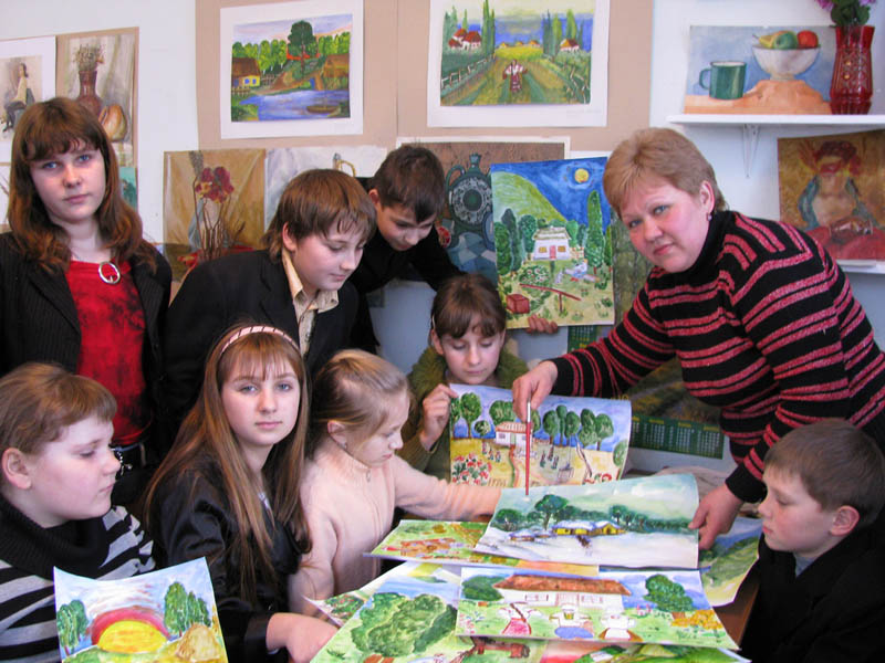 Урок у районній дитячій художній школі імені Тетяни Пати веде Людмила Лук’яненко.