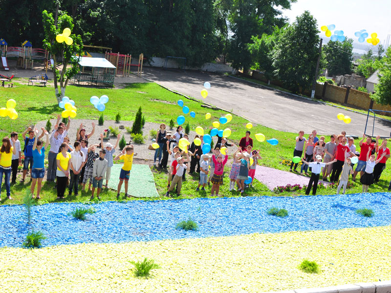 У дворі Дніпропетровського багатопрофільного центру для дітей з недоліками слуху і мовлення його вихованці й педагоги виклали рокарій «Єдність країни». Довжина патріотичної клумби сягає чотирнадцяти, а ширина -шести метрів.