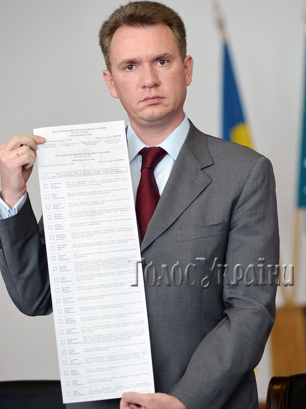 Михайло Охендовський (на знімку вгорі) на брифінгу нагадав, що форму і текст бюлетеня було затверджено постановою Центрвиборчкому від 2 травня поточного року, а друк орієнтовно буде завершено 17 травня. Тож уже з 18 травня розпочнеться передача бюлетенів до окружних виборчих комісій.