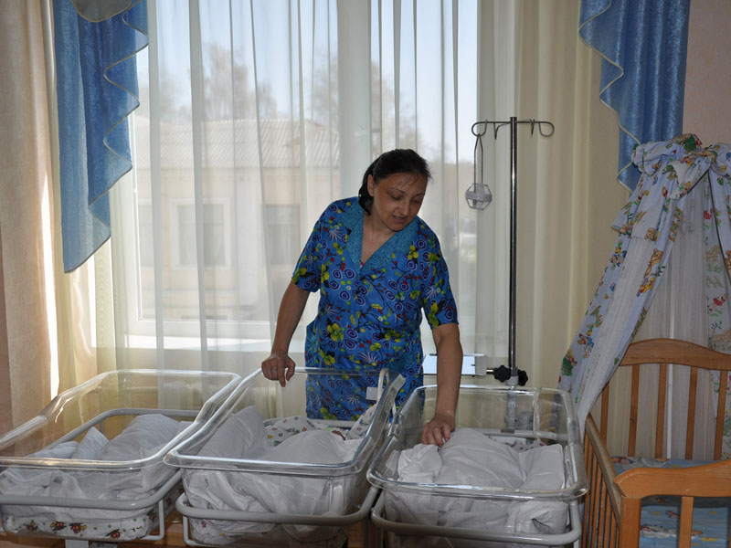 У Житомирському обласному перинатальному центрі народилася трійня. Як стверджує головний лікар установи Юрій Вайсберг, востаннє трійню тут приймали 2011 року. Мама, Лариса Кушербаєва (на знімку), вже має 14-річного сина і 6-річну донечку. Вона розповіла, що спочатку чекала двох малят — стільки показувала ультразвукова діагностика, а коли УЗД нарешті виявила третього, її чоловік хвилин 15 мовчав у слухавку. За словами лікарів, дві дівчинки і хлопчик народилися здоровими з вагою більше двох кілограмів. Породіллю привітали голова облради Віталій Француз, голова ОДА Сидір Кізін та його заступник Ярослав Долгих. У подарунок родина отримала дитячі візки та ковдри. Торік Лариса з чоловіком перебралися на Житомирщину з Севастополя, бо, каже, втомилися жити як на пороховій бочці. Тут чоловік знайшов роботу, добре заробляє, повертатися не збираються.