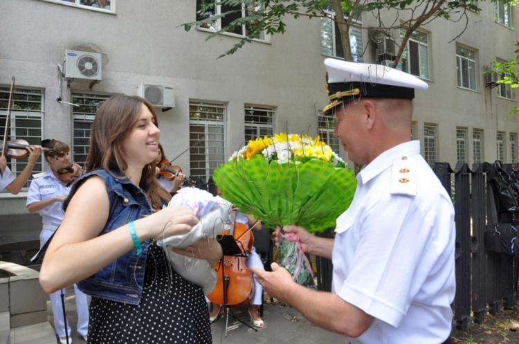 В Одесі українські військові моряки на чолі з командувачем ВМС ЗС України віце-адміралом Сергієм Гайдуком привітали сім’ю Стрелюк з народженням дівчинки — Олександри.