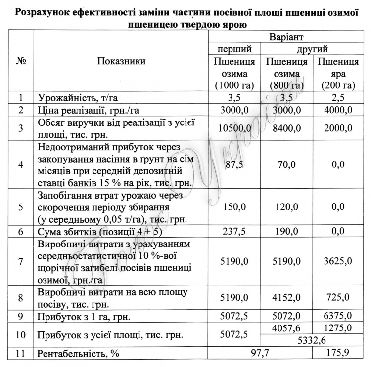 Розширення площі посіву ярої пшениці в Харківській області до 50 тис. гектарів за урожайності 2,3—2,5 т/га, на основі удосконалення технологій вирощування, забезпечить одержання понад 125 тис. тонн високоякісного продовольчого зерна щорічно.