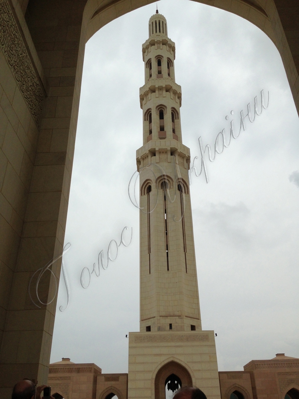 Усі туристські маршрути в Омані обов'язково ведуть до головної мечеті, побудованої по велінню султана Кабуса, що й носить його ім'я. Це -- справжнє архітектурне диво -- перлина Аравійського півострова. Мечеть побудовано з 300 000 тонн індійського піщанику. Головний молитовний зал квадратної форми (74.4 x 74.4 метра) із центральним куполом, що піднімається на 50 метрів. Купол і головний мінарет (90 метрів заввишки) і чотири бічні мінарети (45.5 метра) є головними візуальними особливостями мечеті. Головний молитовний зал може одночасно вмістити понад 6,5 тис. вірян, у той час як жіночий молитовний зал усього тільки 750 людей (31 х 18 метрів). Зовнішня молитовна територія здатна вмістити 8 тис. вірян, сумарна кількість до 20 тис. вірян. Мечеть Султана Кабуса займає площу 416 тис.кв.м. Інтер'єр покритий білим і сірим мармуром. Керамічні квіткові візерунки прикрашають інтер'єр арки й сліпих ніш. Купол, що ширяє на висоті, -- подвійний: внутрішня оболонка покрита позолоченою мозаїкою, зовнішня являє собою ажурне покриття. Головний зал освітлюють 35 люстр; діаметр найбільшою, зробленої в Австрії -- 14 м, вона має 1122 лампи й важить 8 тонн. На кожній люстрі із кришталю й кристалів "Сваровські" відтворені в мініатюрі безліч мінаретів мечеті. Перський килим у головному залі вагою 21 тонн, створений з 1,7 млн. вузлів, на його візерунках -- 28 квітів, причому використовувалися винятково рослинні барвники. Килим розміром 70 х 60 м. із 58 частин, які були потім з'єднані в один килим, протягом чотирьох років ткали 600 жінок у дві зміни. Розстеляння килима зайняло кілька місяців. Це найбільший килим у світі.