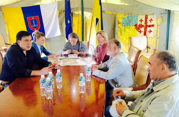 Голова Одеської ОДА Міхеїл Саакашвілі почав працювати у своєму тимчасовому робочому кабінеті, розташованому на 32-му кілометрі траси Одеса—Рені.