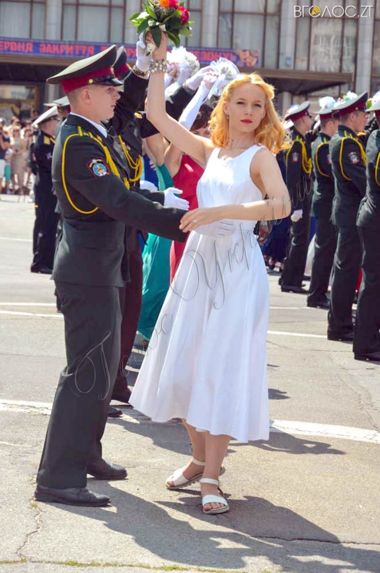 Після урочистого вручення дипломів випускникам Житомирського військового інституту імені Сергія Корольова на Соборному майдані міста відбувся офіцерський бал. Тривав він уже вчетверте. Під час балу один з молодих лейтенантів Дмитро Вовк запропонував своїй дівчині руку і серце. Анастасія Волошнюк запевнила, що поїде за чоловіком. Як розповів один з курсантів, уже ввечері — поїзд, а наступного дня треба бути у військовій частині, де проходитиме службу.