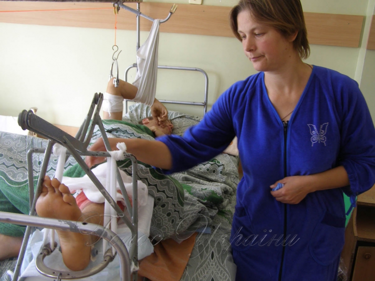 —15-річного пацієнта доставили з відкритими переломами — плечової кістки руки і гомілки ноги, з численними травмами на тілі. Уже провели дві операції, попереду ще декілька оперативних втручань. Вони залежатимуть від того, як протікатиме процес загоювання ран. Йому будемо ставити або пластину, або апарат зовнішньої фіксації. Зараз пацієнт знаходиться на скелетному витягуванні. Добре, що нема травми голови, так само не пошкоджено внутрішні органи. Найбільше удар прийшовся у ногу і плече. Зараз він у стані середньої важкості, при свідомості, розмовляє, поводиться адекватно. Емоційна поведінка пояснюється пережитим сильним стресом. На 90 відсотків упевнений, що піднімемо його на ноги, і він почуватиметься добре, захоче — може стати футболістом. Якщо все буде добре, то про ніякі імпланти чи протези не доведеться вести мову.