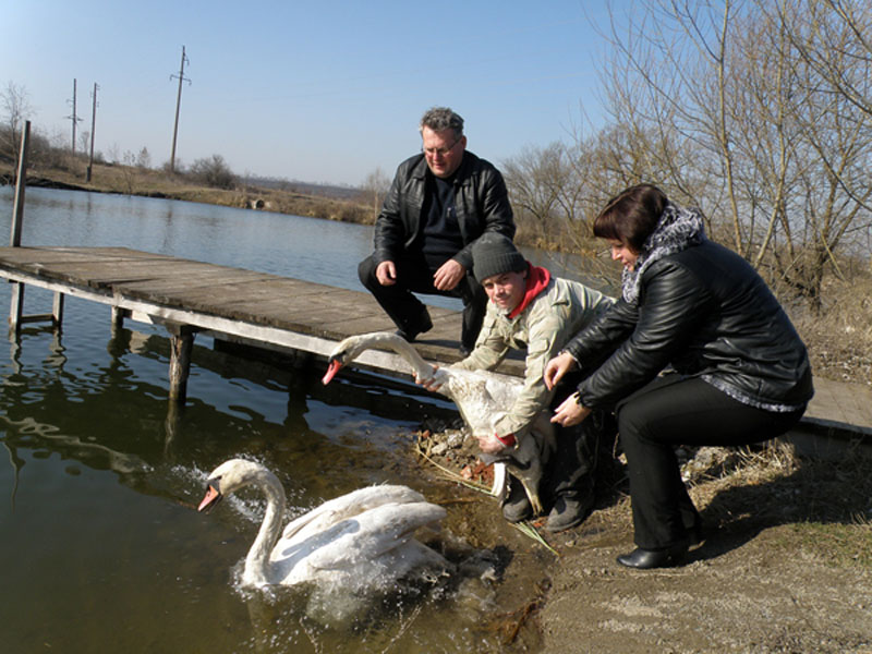 Лебедина пара, яку на період великих морозів прихистили в СТОВ «Росія» (м. Новоукраїнка), благополучно відзимувала і вже освоює місцевий ставок. Працівники господарства сумлінно доглядали за птахами і розлучалися з ними зі сльозами на очах.