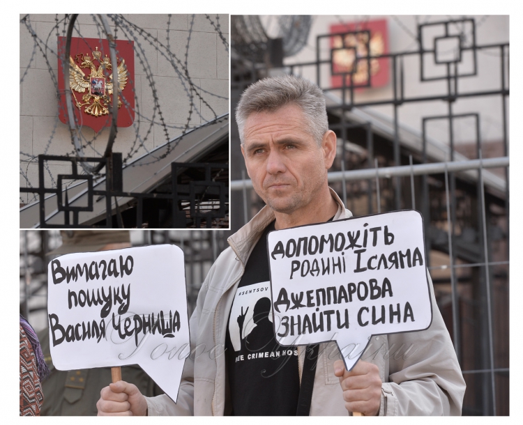 Під час акції «Де Ервін?» біля посольства Російської Федерації активісти представили перформанс «Дзига у голові» про почуття родичів викрадених і зниклих людей в анексованому Криму.