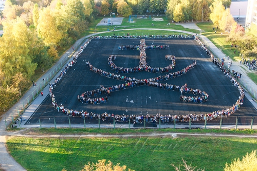 Загалом 2009 студентів навчальних закладів міста над Південним Бугом взяли участь у цьому флешмобі. Дійство відбувалося на спортивному майданчику медичного коледжу імені академіка Заболотного (на знімку). Не дивно, що студентів названого навчального закладу було чи не найбільше з-поміж учасників флешмобу. Фіксували подію з висоти дев’ятого поверху гуртожитку, що розташований поруч. Ініціатором та організатором заходу стали відділ у справах молоді та туризму міськради та молодіжна рада. Голова молодіжної ради Дмитро Мира повідомив журналістам загальну кількість студентів, які виявили бажання взяти участь у яскравому дійстві.