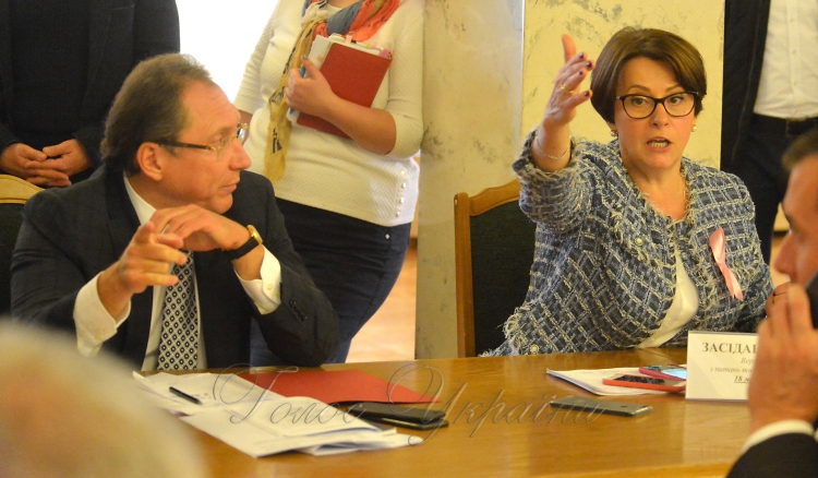 Секретар комітету Верховної Ради України з питань податкової та митної політики Олег Кришин та голова комітету Ніна Южаніна під час засідання комітету, на якому, зокрема, було розглянуто проект закону про внесення змін до Податкового кодексу України щодо ставок деяких податків (реєстр. № 9085 від 17.09.2018 року).