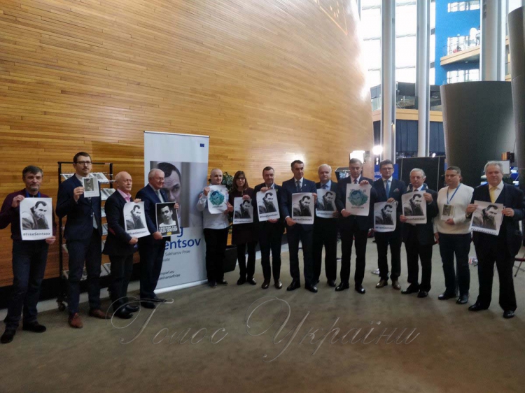 На знімку: перед початком церемонії євродепутати висловили свою солідарність з Олегом Сенцовим.