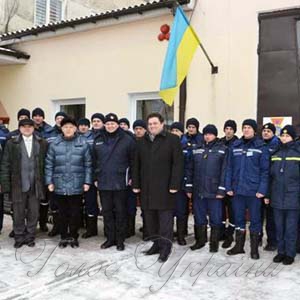 Народний депутат Михайло Довбенко (третій ліворуч у першому ряду) під час зустрічі з рятувальниками Галича.
