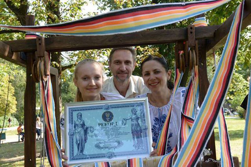 На минулому музично-мистецькому фестивалі «ШіДі РіДі FEST» уманські майстри народної творчості встановили рекорд України. На стародавньому верстаті виткали найдовший у країні 16-метровий «Пояс єднання українців» (на знімку).