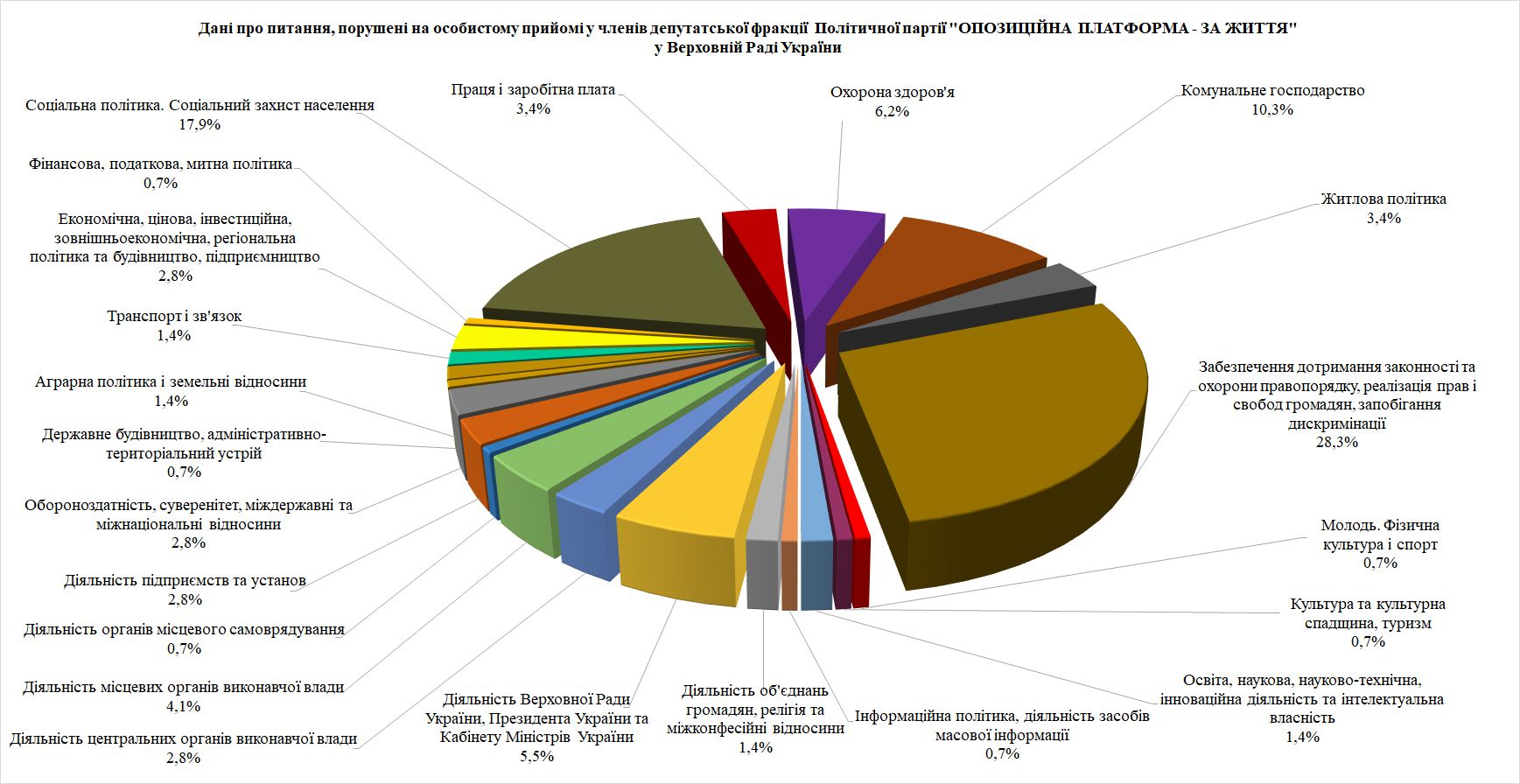 Під час особистого прийому відвідувачі порушили 145 питань, найактуальнішими з яких були: забезпечення дотримання законності та охорони правопорядку, реалізації прав і свобод громадян, запобігання дискримінації; соціальної політики та соціального захисту населення; комунального господарства.