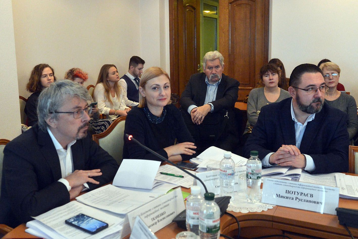 Голова комітету Олександр Ткаченко, заступники голови комітету Євгенія Кравчук, Микита Потураєв під час засідання Комітету з питань гуманітарної та інформаційної політики.