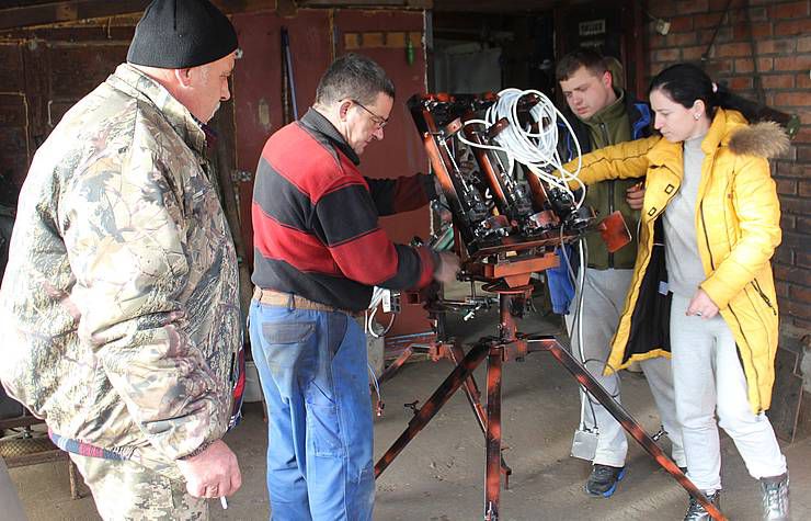Станини для РПГ виготовив сільський умілець Володимир (другий ліворуч), праворуч від нього Денис і Людмила.