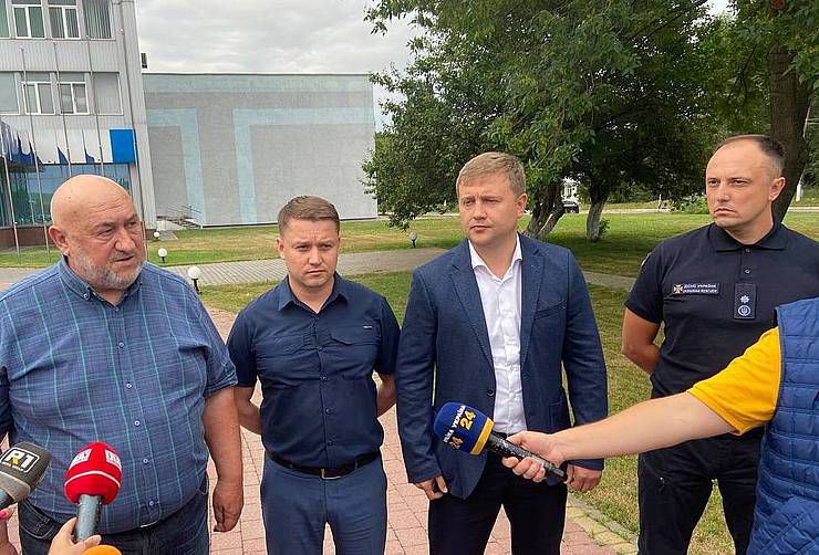 Голова правління «Рівнеазоту» Михайло Заблуда, міський голова Рівного Олександр Третяк, голова РОДА Віталій Коваль, начальник ГУ ДСНС у Рівненській області Сергій Крук розповідають про ситуацію на хімічному гіганті.