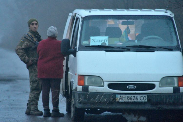 Вулицею села, вздовж блокпоста, майже цілий день з паличкою гуляє туди-сюди симпатична бабуся в хорошому зеленому пальто. «Мене звати Надя. Мені 70 років. Живу в цьому селі давно. Їхати нікуди не збираюся. Ще саджу город», — каже вона.
