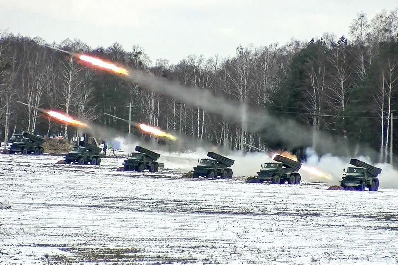 На знімках: маневри російських і білоруських військ біля кордонів України.