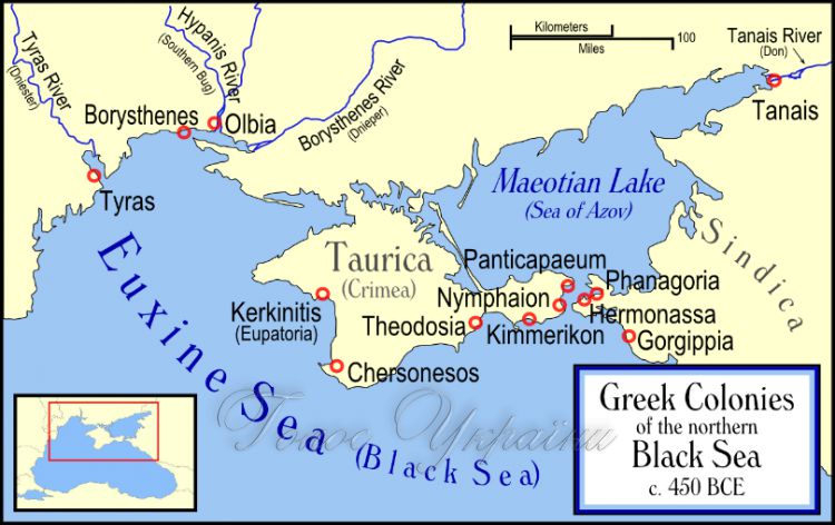 Азовське море тоді вважалося кордоном Європи і Азії. Тамань була Азією, а Таврида – Європою (мал. 1). А ще Азовське море в ті часи називали Ахейським або Егейським…