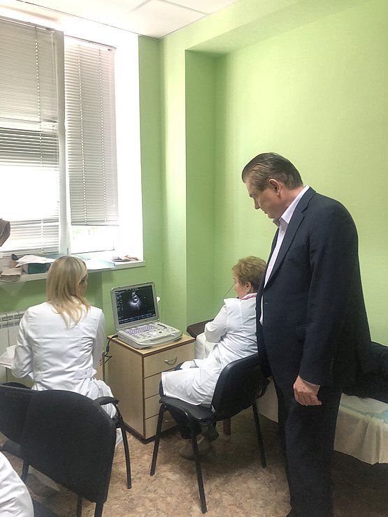 Василь Лазоришинець під час УЗД серця пацієнтки з деокупованого Ірпеня.