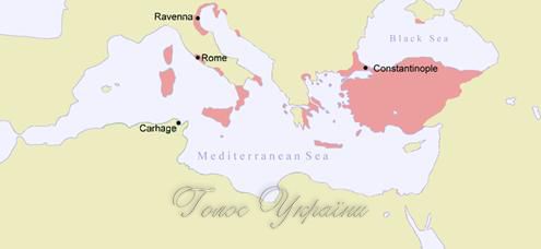 2. Карта Великої Романії (Риму) у VI столітті н.е.