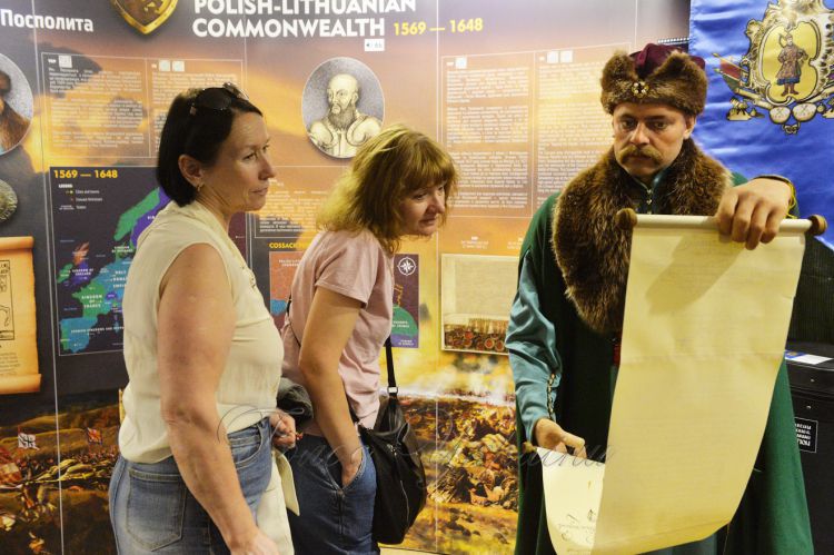 В експозиції розміщено фігури історичних особистостей, а також представлено прапори, документи, печатки, мапи, відео- та аудіоконтент і VR-технології. Виставка дає можливість у цікавій, інтерактивній, сучасній формі представити тисячолітню історію України за одну годину.