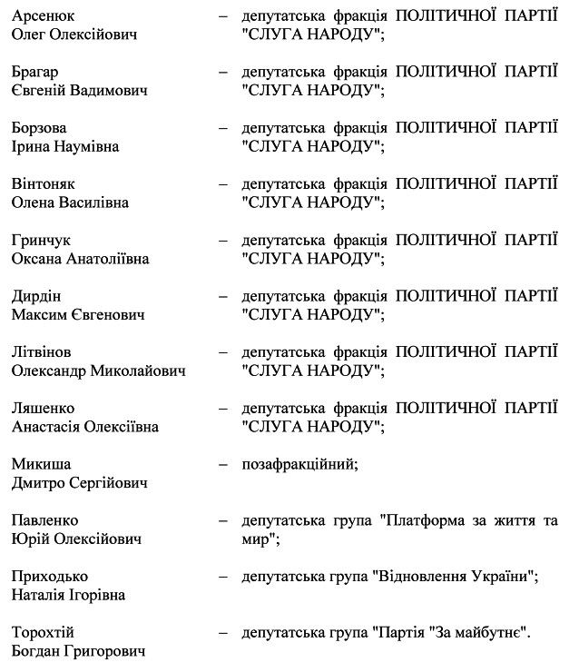 5. Обрати до складу Тимчасової слідчої комісії таких народних депутатів України: