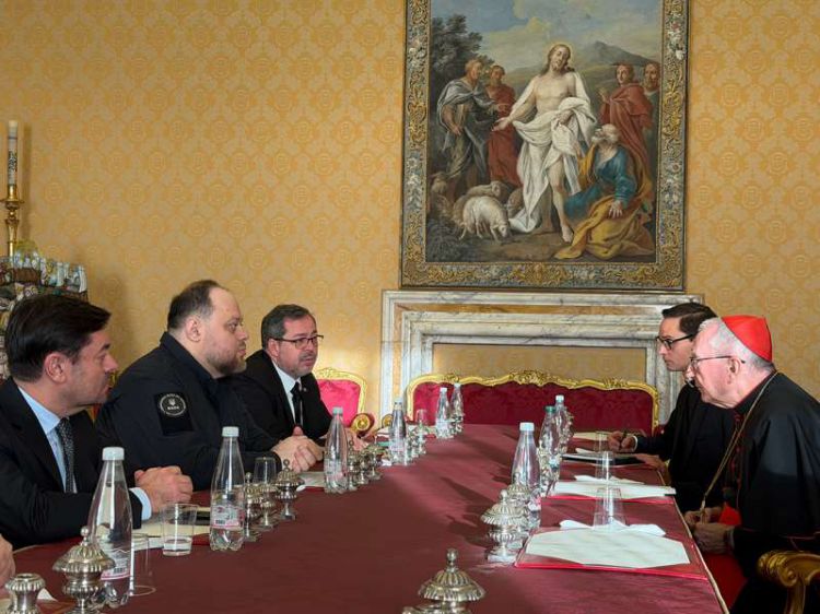 Під час зустрічі Голова Верховної Ради України поінформував Кардинала Пароліна про поточні дипломатичні консультації України зі Сполученими Штатами Америки та європейськими партнерами. Він наголосив, що незмінним орієнтиром України залишається справедливий мир, а не тимчасова пауза, яка дала б росії можливість перегрупуватися.