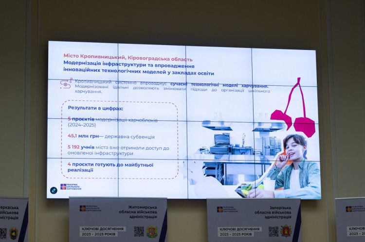 У 2025 році в області за державного співфінансування створили вісім нових харчоблоків: п’ять із них уже працюють, ще три перебувають на етапі запуску. Оновлення охопило як міські, так і сільські громади. Крім того, підготовлено проєкти модернізації ще 34 об’єктів, реалізацію яких заплановано на 2026 рік.