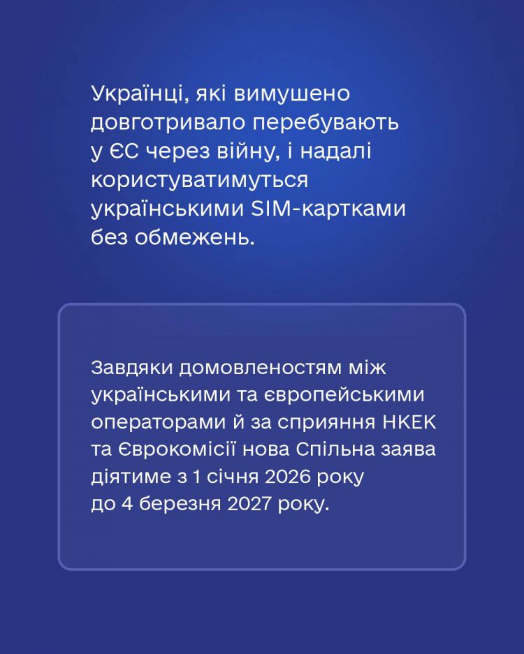 З 1 січня 2026 року для користувачів мобільного зв’язку запроваджується режим Roam Like at Home, який передбачає можливість здійснювати дзвінки, надсилати SMS та користуватися мобільним інтернетом у 27 країнах Європейського Союзу за домашнім тарифом, без додаткової плати.