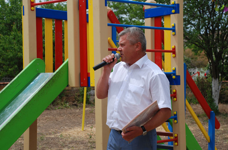Народний депутат України Олександр Нечаєв першим привітав дітей і побажав дітворі, щоб майданчик став для них місцем спілкування, ігор і фізичного розвитку.