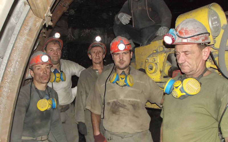 На знімку: прохідники (зліва направо) Олег Лукашук, ланковий Олександр Герасимчук, Віталій Чуйко, Володимир Маслай, Василь Рудь навіть у цей складний для Десятої «Нововолинської» час не припиняють роботу.
