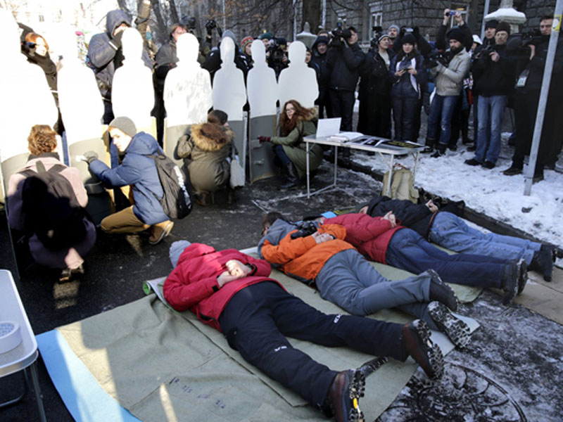 На знімку: акція в Києві на вулиці Банковій, у ході якої активісти вимагали розслідувати порушення прав людини під час Євромайдану.