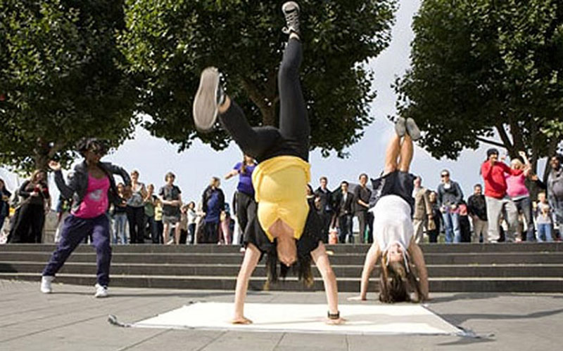 Брейк-данс вагітних. Такі флешмоби у 2008 році пройшли у Парижі, Лондоні, Берліні та Канаді. Декілька десятків жінок на пізніх термінах вагітності збирались у багатолюдних парках, щоб станцювати брейк-данс з елементами акробатичних трюків. Випадкові глядачі були шоковані і хапалися за голову. Але сміливі танцівниці переслідували благородні цілі. Виконання таких трюків могло серйозно загрожувати ще не народженим малюкам і символізувало бідність. А сам флешмоб відбувався на знак підтримки вагітних з країн третього світу, котрі не отримують належної медичної допомоги під час виношування дитини і народжують без акушерок в нестерильних умовах.