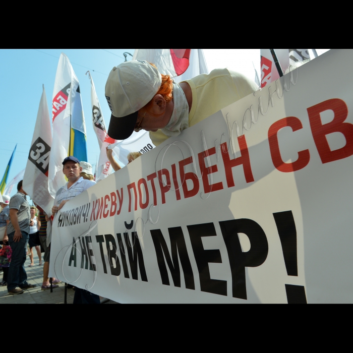 Біля КМДА паралельно було проведено декілька акцій. Зокрема кияни - представники громадської ініціативи «Рух Гая Фокса» розпочали масштабну акцію-флешмоб, під час якої спалили двометровий макет будівлі міськадміністрації факелом, принесеним активістами "Руху Гая Фокса” від пам'ятника архангела Михаїла. Також мешканці Києва і представники громадських організацій та ВО “Свобода” пікетували Київську міськраду з вимогою до «прострочених» депутатів негайно звільнити приміщення у зв’язку з нелегітимним проведенням сесії Київради, повноваження депутатів якої закінчилися ще 2 червня 2013 р. Пікетувальники і народні депутати намагалися зайти до приміщення КМДА.