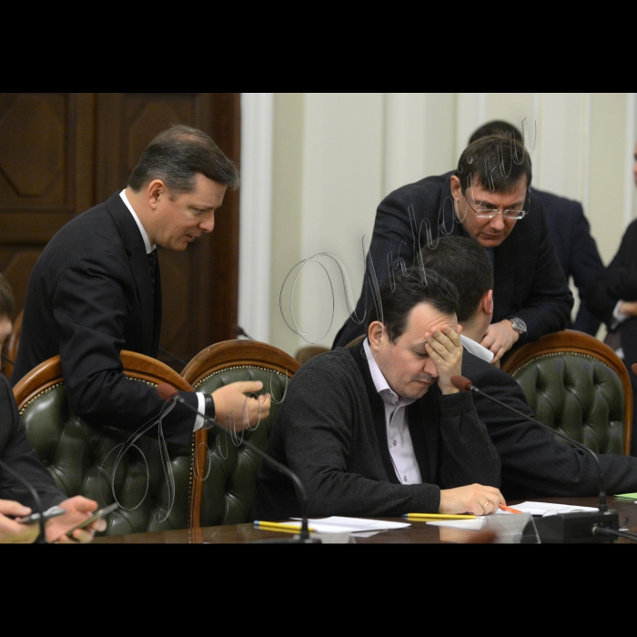 Олег Ляшко РП, Олег Березюк (САМ), Юрій Луценко (БП)Відбулося засідання Погоджувальної ради керівників фракцій та голів комітетів Верховної Ради України.