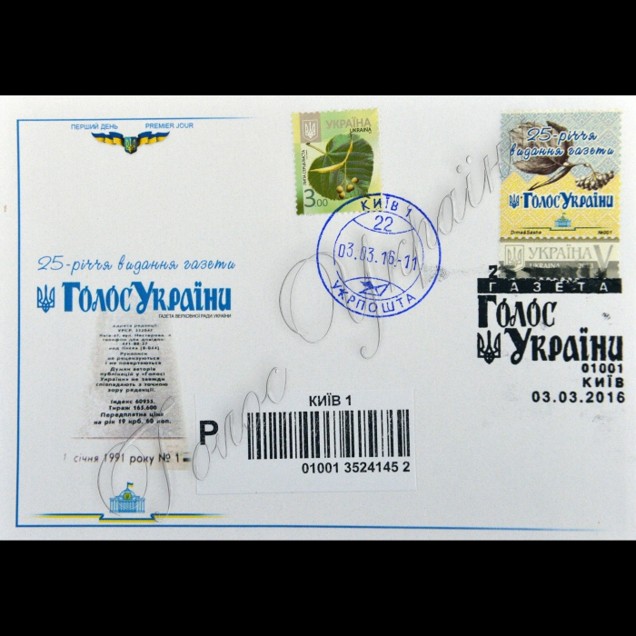 Головний редактор Анатолій Горлов, керівник Укрпошти Ігор Ткачук, начальник відділу філателістичної продукції Укрпошти Наталя МухінаУ великій операційній залі Будинку зв’язку Укрпошта провела урочисту церемонію спецпогашення художнього немаркованого конверта, випуск якого приурочено 25-річчю заснування газети «Голос України».
