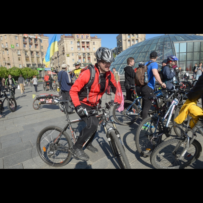 На Майдані зустрілися жителі Києва, які добираються на роботу чи навчання велосипедом з різних районів міста. Метою масової акції “Велосипедом на роботу”, до якої щороку залучається все більше киян, є нагадування міській владі про необхідність створення безпечних і комфортних умов для руху велосипедистів — через створення велосипедної інфраструктури та регулювання швидкості руху автомобілів.