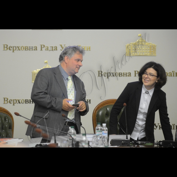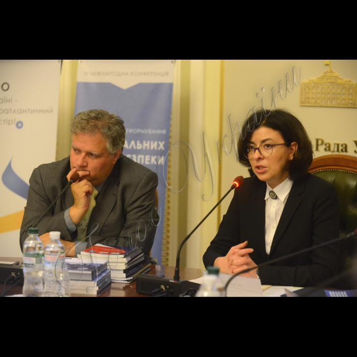 Заступник голови ВРУ Оксана Сироїд (праворуч) та Філіпп Флурі, заступник директора, DCAF (Женевський центр контролю над Збройними Силами).Відбулася Міжнародна конференція на тему: «Урядування та реформування національних служб безпеки та розвідки: кращі міжнародні практики».