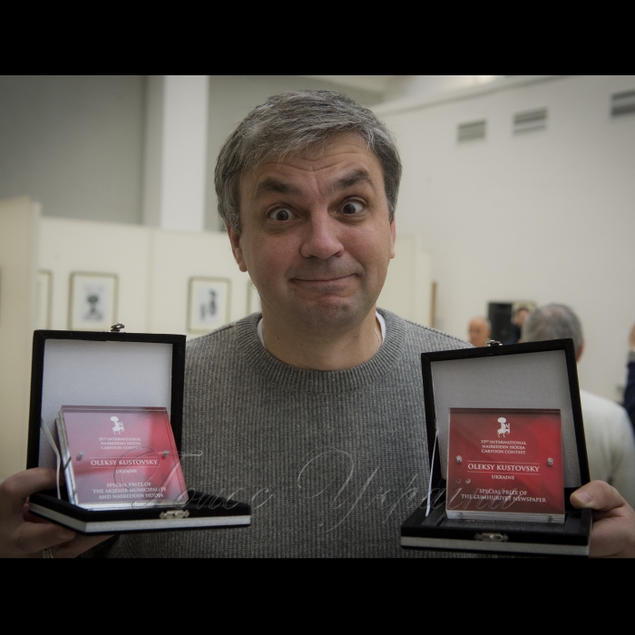 Художник-карикатурист Олексій Кустовський.23 жовтня 2016 у Національному музеї Тараса Шевченка відбулась зустріч з відомими турецькими та українськими карикатуристами і церемонія нагородження українських лауреатів Міжнародних конкурсів карикатури імені Ходжі Насреддіна, що проводилися в Стамбулі. Делегацію турецьких карикатуристів очолює голова Асоціації Метін Пекер, а до її складу входять відомі турецькі художники - Мухіттін Короглу, Ердоган Басол та інші.